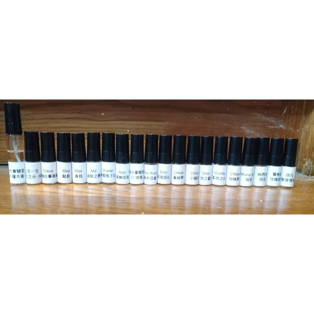 Chanel 華麗梔子花香水 1ml Chloe 小豬包 1ml Chloe 粉絲帶 1ml Chloe 黃絲帶 1ml Chloe 愛情故事晨曦 1ml Dior 花樣甜心 1ml Dior 悦之歡 1ml Dior 真我 1ml Dior 漫舞玫瑰 1ml Dior 魅惑 1ml Miumiu 藍色之水 1ml MJ 雛菊之夢 1ml Tiffany&Co 同名 1ml Tom ford j 烏木沉香 1ml 三宅一升 一生之水-女 1ml 香水實驗室 31 玫瑰 1ml 香水實驗室 33 檀木香 5ml 浪凡 摩登冒險 1ml 納西素 同名 1ml 寶格麗 玫瑰金漾 1ml
