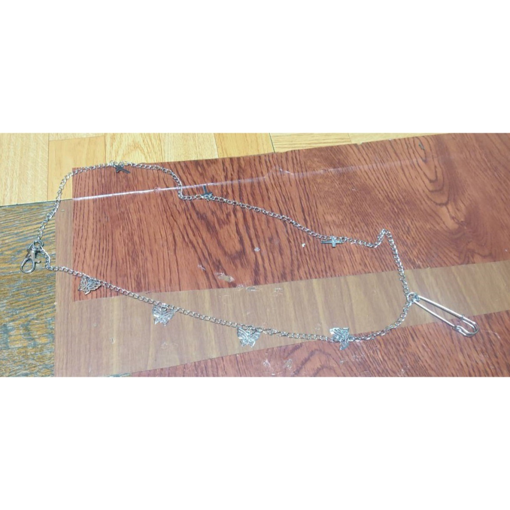 尺寸:鍊寬0.8cm長55cm 寬0.7cm長65cm 掛勾:3.7x1.7cm . 別針6.4x1.8cm 小蝴蝶2x1.6cm 十字架3.5x2cm 重約120g 材質:合金