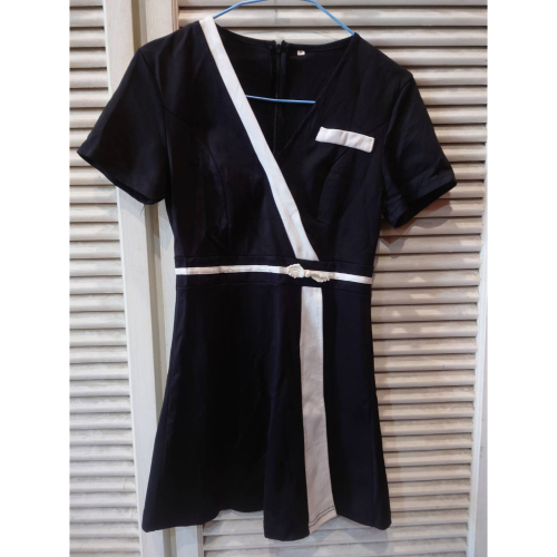 修身V領洋裝 春夏秋短袖裙子 短款撞色洋裝 短袖包臀連衣裙 V領短袖短裙 拼接洋裝 ins風包臀裙 短袖洋裝