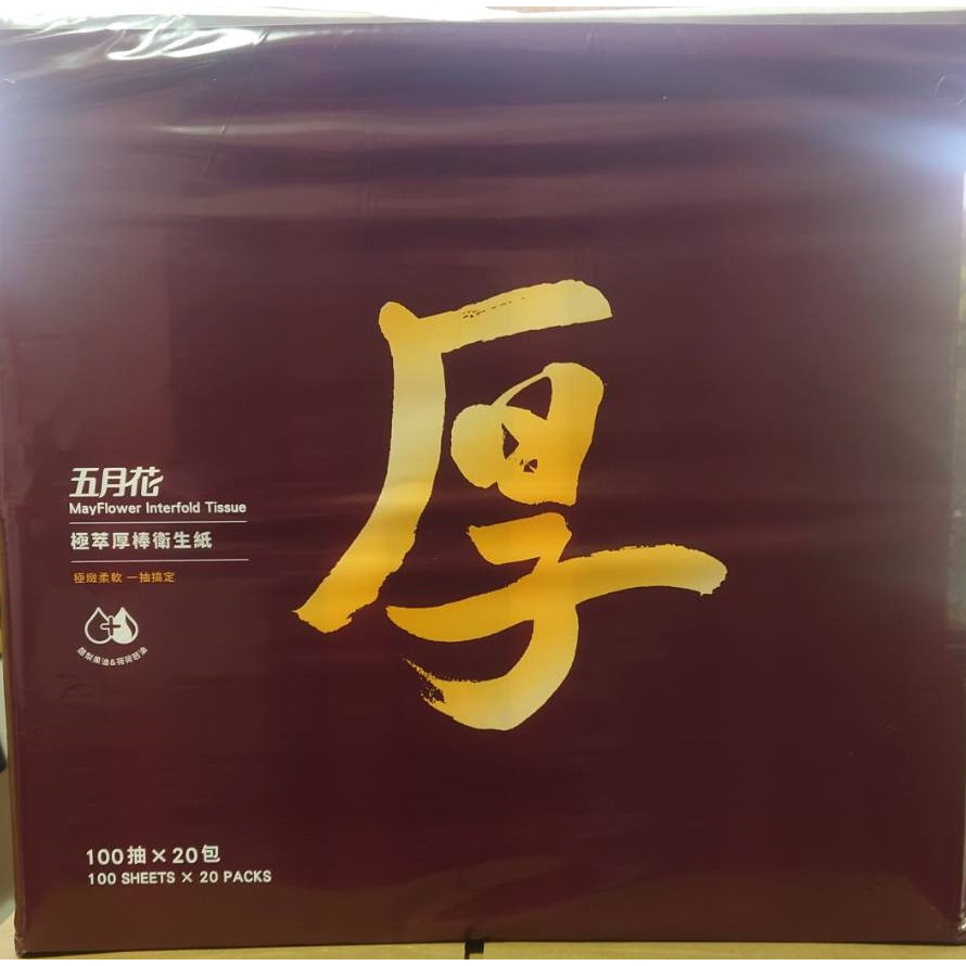 品名五月花 極萃厚棒抽取式衛生紙 100抽