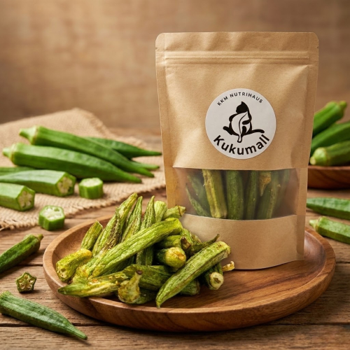 KKM 營養屋選用新鮮秋葵製作,保留秋葵本身的清香與蔬菜風味,透過製程呈現爽脆口感,吃起來輕巧不油膩。