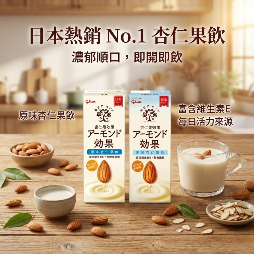 日本製優質杏仁果飲:採用獨特的凍結粉碎技術,完美保留了杏仁果實的營養和香醇口感。