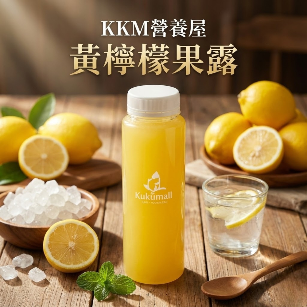KKM 營養屋選用屏東新鮮黃檸檬製作,保留檸檬本身清新的酸香與果皮香氣,將風味濃縮成適合調飲使用的果露形式。