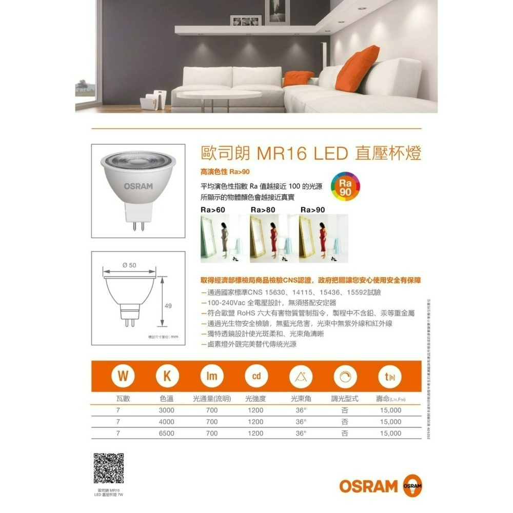 含稅 OSRAM 歐司朗 LED MR16 免安杯燈 7W 免變壓器 免安定器 (黃光/自然光/白光) 全電壓
