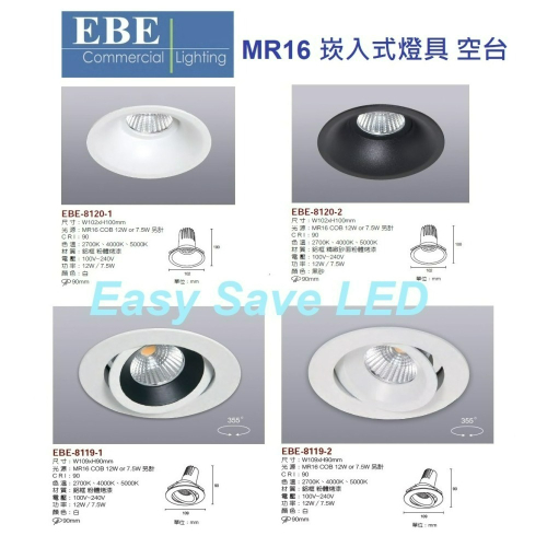 EBE MR16 燈具 崁入式系列 開孔9cm/9.3cm/9.5cm/9.7cm 空台 不含燈源