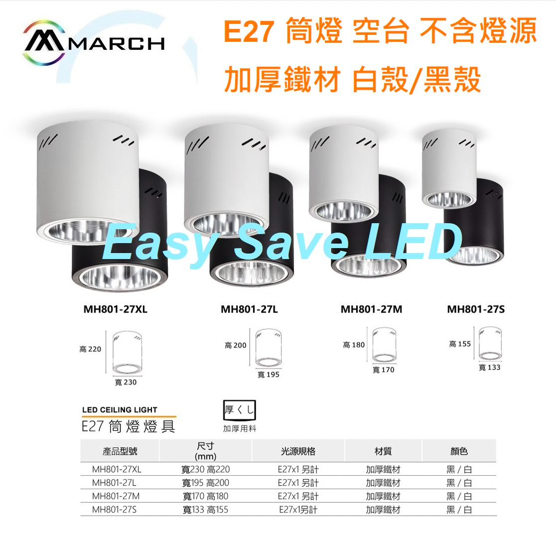 含稅 MARCH 筒燈 燈具 E27 加厚鐵材 光源使用E27燈泡 白殼/黑殼 空台 不含光源 光源另計