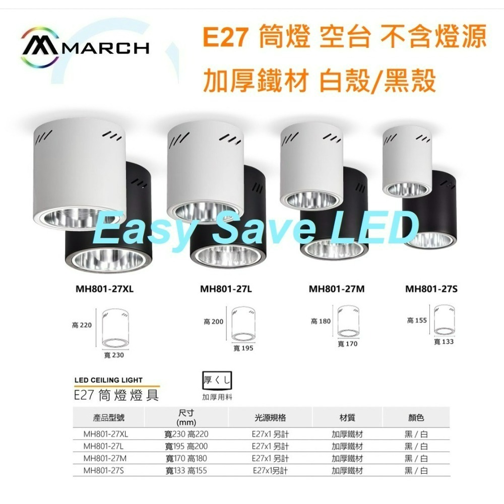MARCH 筒燈 燈具 E27 加厚鐵材 光源使用E27燈泡 白殼/黑殼 空台 不含光源 光源另計