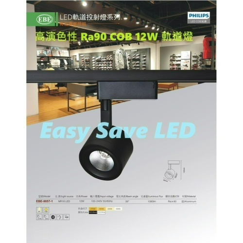 名 稱 : EBE 質感Ra90高演色性 質感軌道燈 飛利浦COB