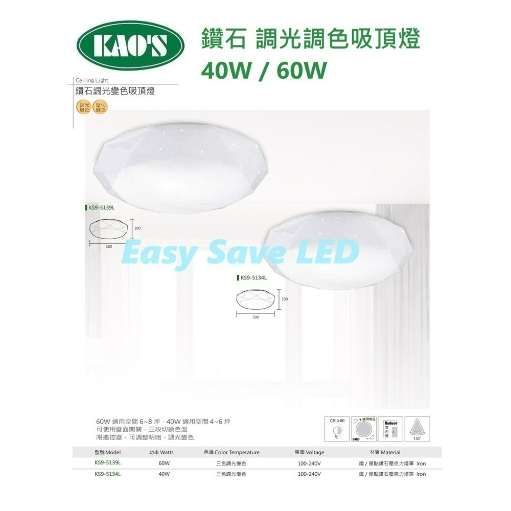 名 稱 : KAO'S LED 遙控 鑽石款 調光調色 吸頂燈