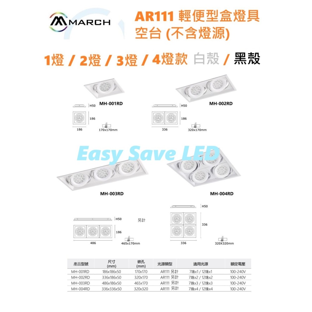 名 稱 : MARCH AR111 替換式輕便型方型崁燈 盒燈 四角崁燈 空台 光源另計