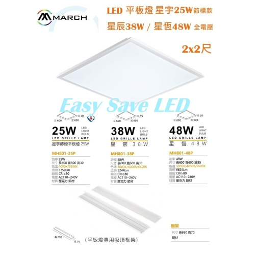 產品名稱:MARCH LED 25W(星宇節標) / 38W(星辰) / 48W(星恆) 平板燈