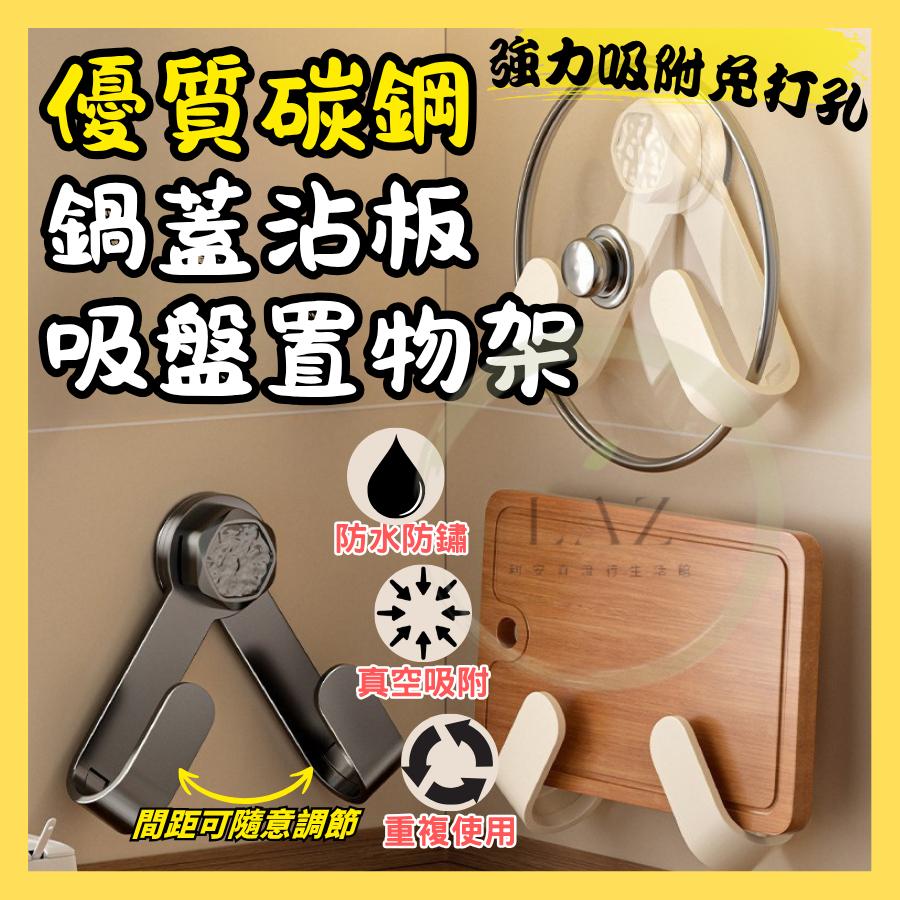 【高質感碳鋼強力吸盤】隔日配 鍋蓋架 廚房置物架 鍋蓋收納架 砧板架 廚房收納架 黑色 白色