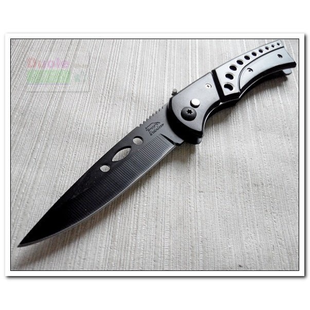 露營登山刀/不鏽鋼黑色塗層彈簧刀/跳刀/折刀/白光LED燈