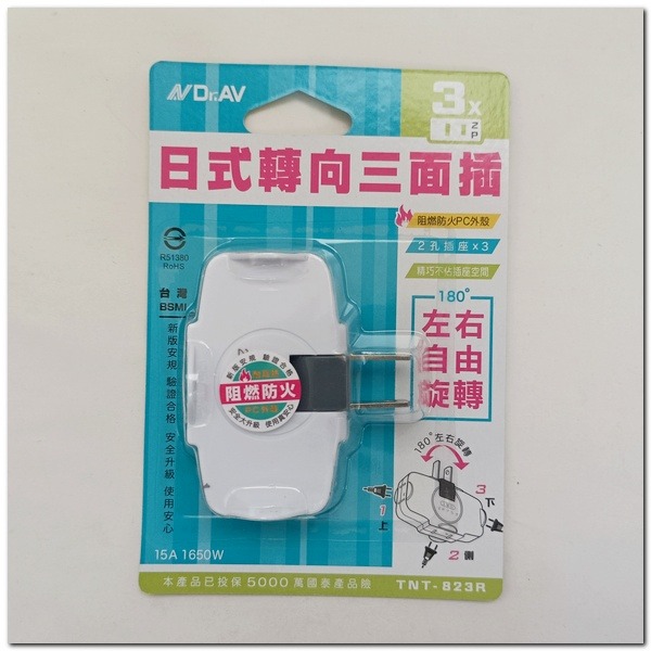 Dr.Av 聖岡 TNT-823R 日式新創 轉向三面插座 轉向插座 防火耐熱 插頭