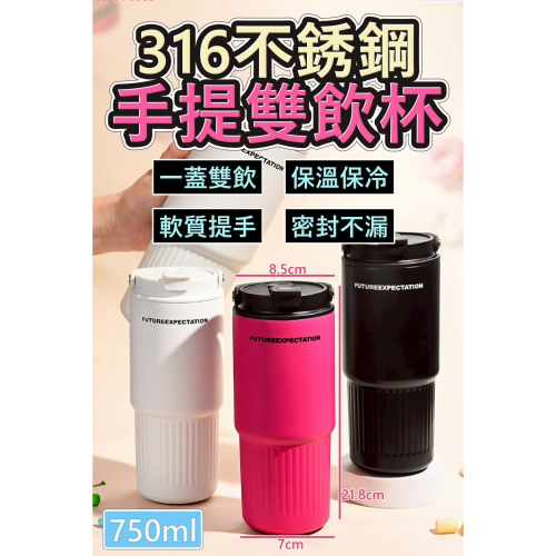 316不鏽鋼手提雙飲杯 彈跳吸管 雙飲杯 750ml 手提冰壩杯 雙層不鏽鋼 316不鏽鋼保溫杯 咖啡杯 保溫杯