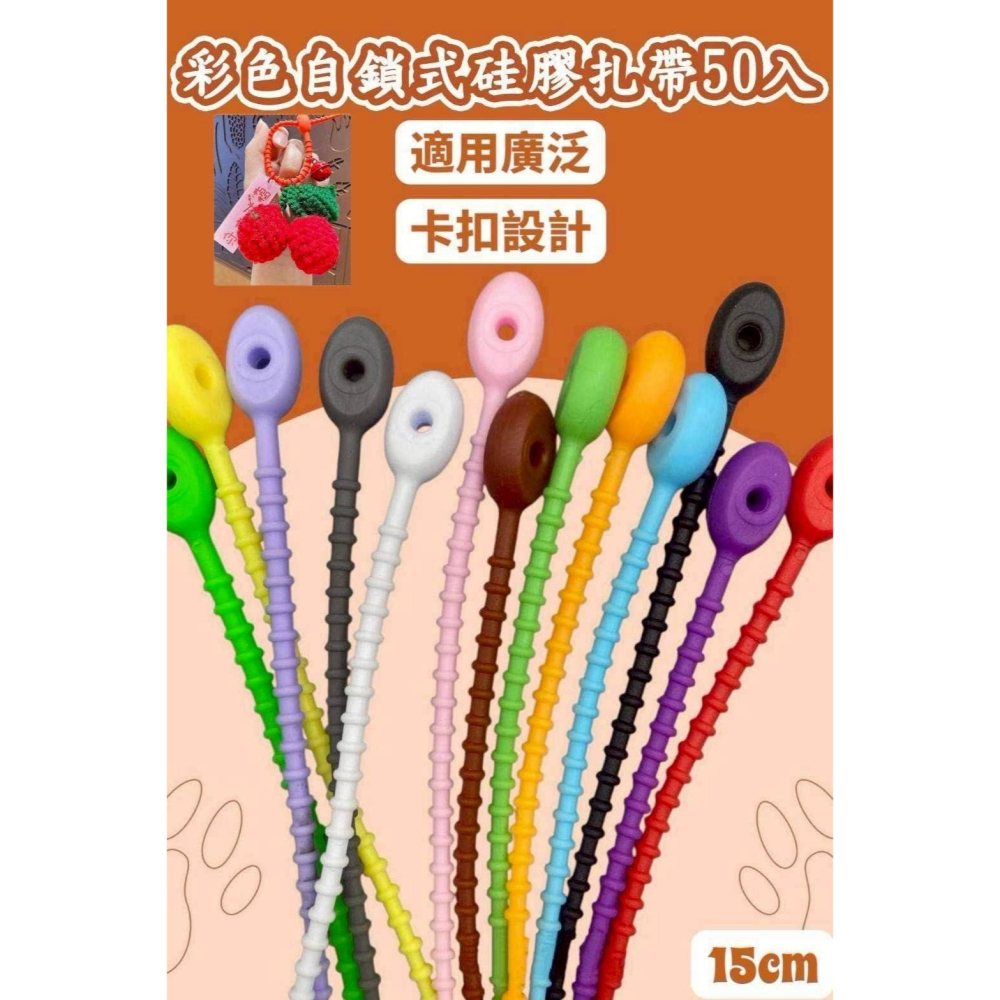 彩色矽膠束帶50入 矽膠束帶 束帶 理線帶 紮線帶 繞線器 固線器 掛繩 15Cm收納繩一包50入