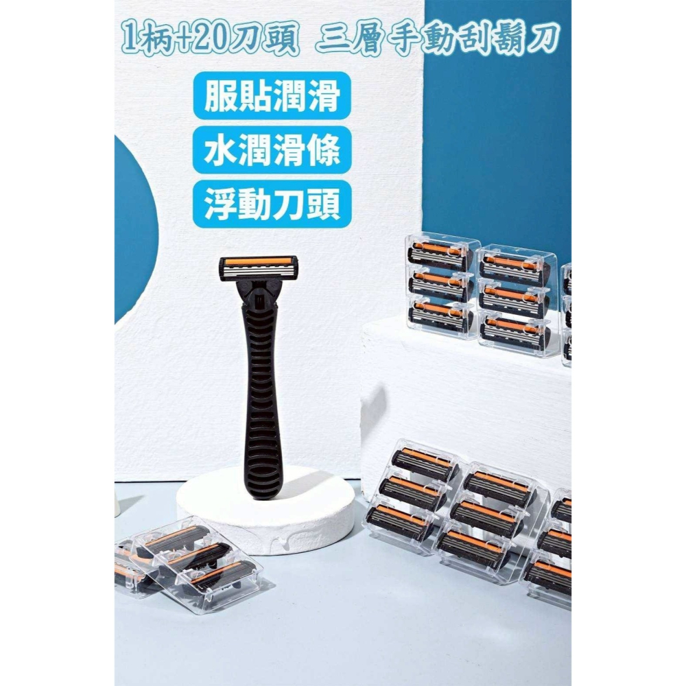 1柄+20頭刮鬍刀 20+1刀頭 刮鬍刀 附20個刀頭 三刀片 三層刀網 刮鬍刀超值組