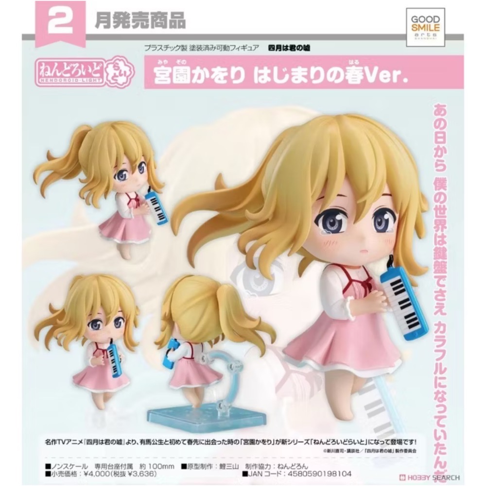 【小龍便宜公仔】全新 正版 GSC 黏土人 Light 四月是你的謊言 宮園薰 初始的春天 Ver. Q版