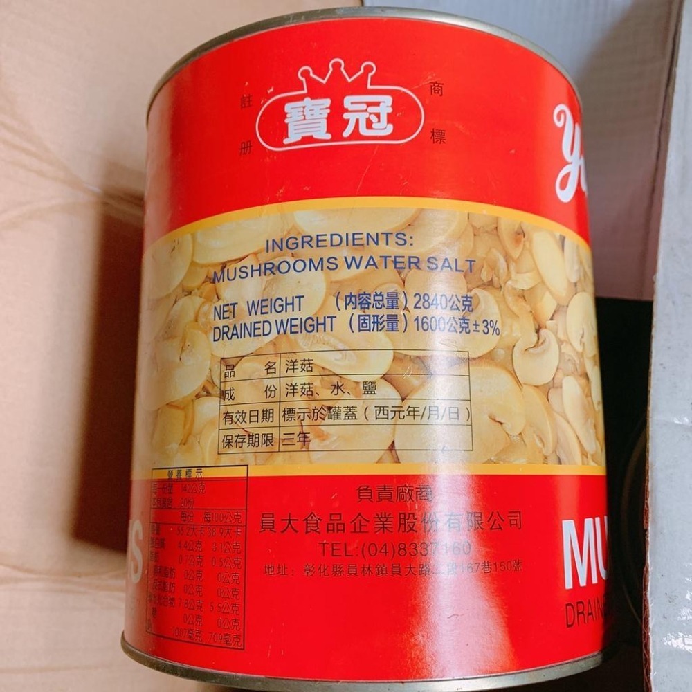 寶冠牌 洋菇整片罐頭