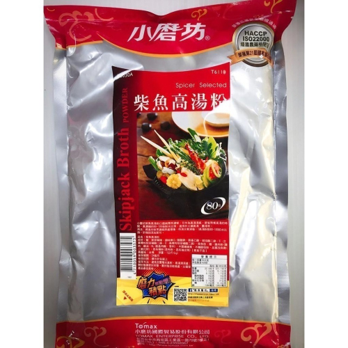 - 特色:小磨坊柴魚高湯粉具有大海鰹魚鮮美味,口感純厚而濃郁,可作為高湯湯底,節省熬煮高湯的時間,高濃縮的80~100倍對水比例,適用於火鍋高湯、羹湯等。