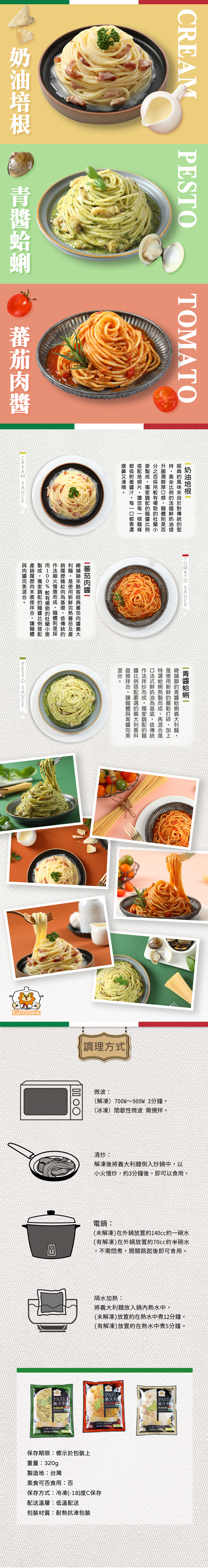 (此商品預設口味為:青醬蛤蜊x3、蕃茄肉醬x3、奶油培根x3)