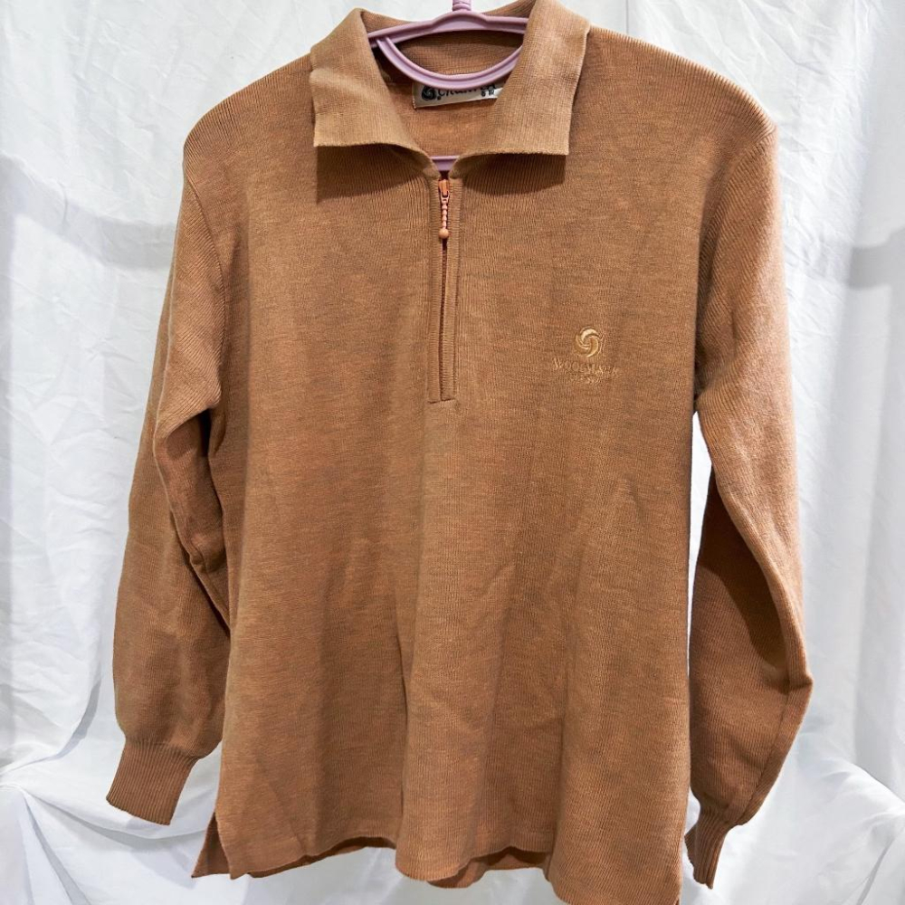 🪝古著🪝奶茶色立領半拉鍊針織長袖上衣/早期台灣🇹🇼春毅品牌/vintage復古.Second hand