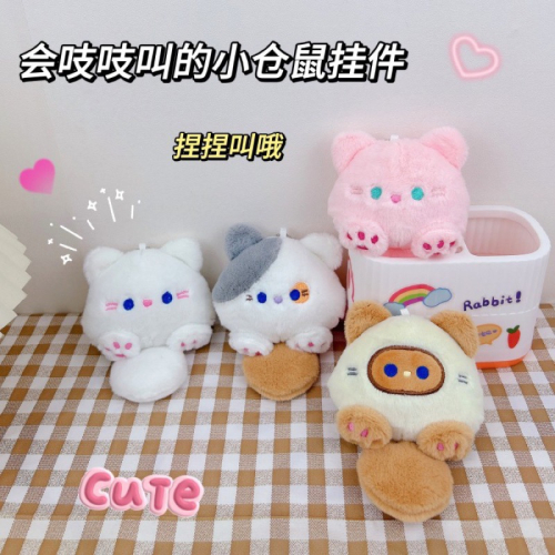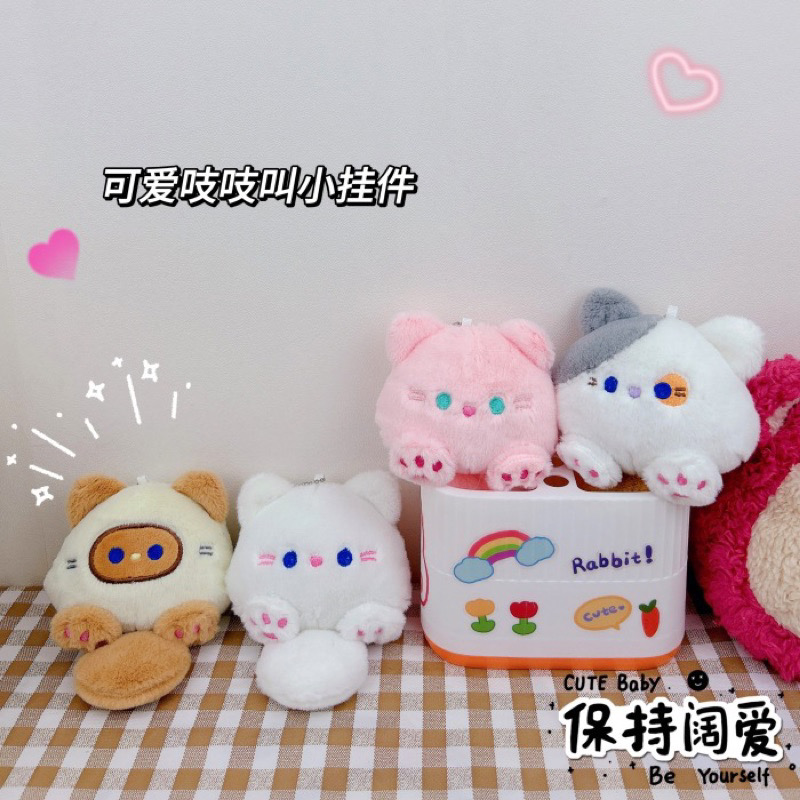 🌸葵の工作室-可愛吱吱叫小貓咪毛絨鑰匙扣掛件創意書包包掛飾