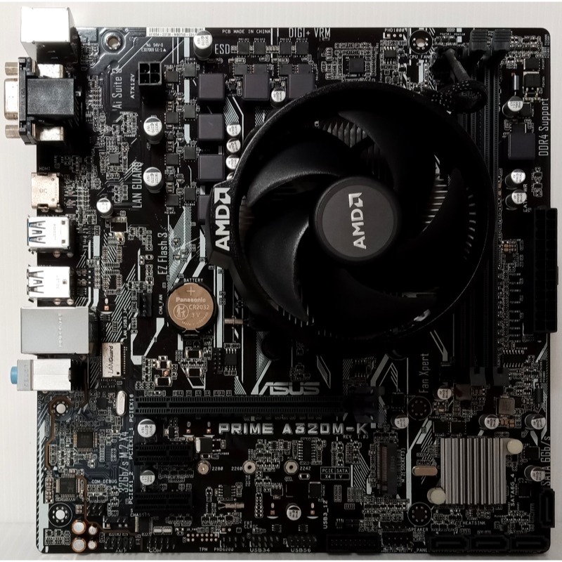 AM4腳位 實體拍攝 ASUS PRIME A320M-K + Athlon 200GE 附擋板/原廠散熱器