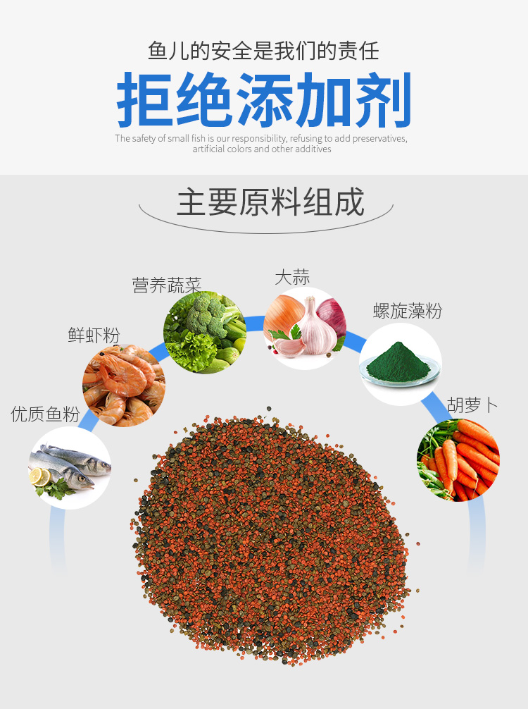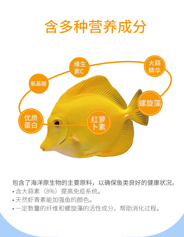 特別添加螺旋藻及卵磷脂,針對魚隻有絶佳的揚色及腸胃保健效果