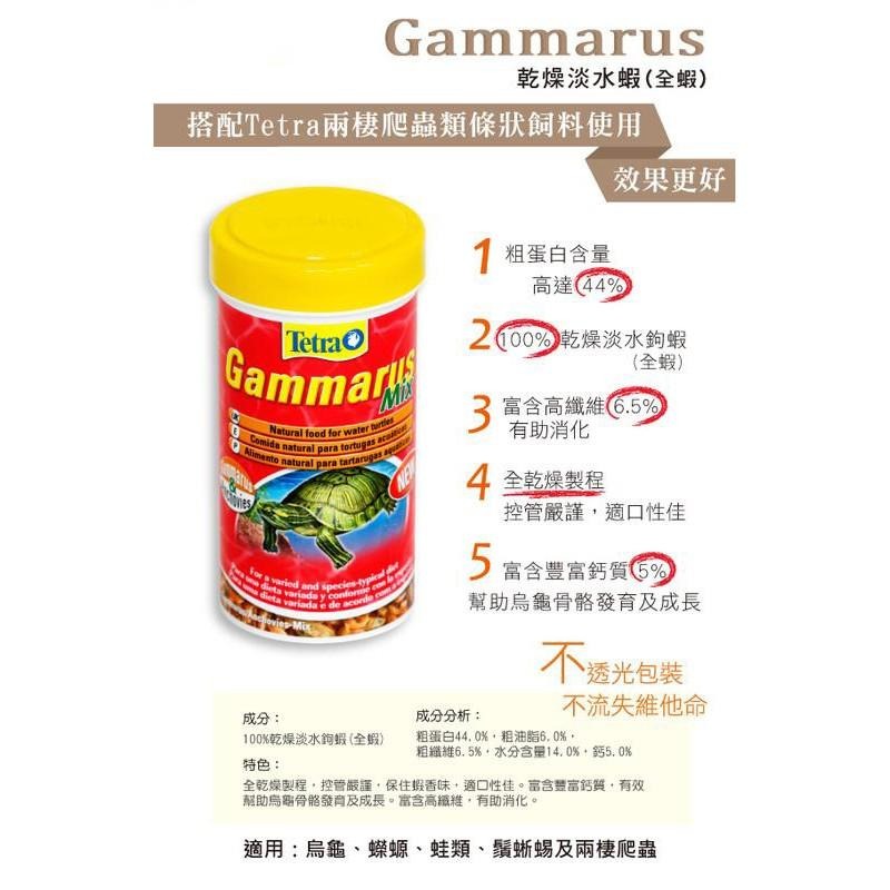 乾燥後的小蝦仍保有其營養成分、適口性加,含有豐富的鈣質, 能有效地幫助烏龜骨骼的發育及成長,並增進其活力。