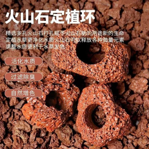 ✎由於多孔特徵,有利於水草攀抓和紮根固徑,石頭本身溶出的多種礦物成分不僅有利於魚兒的生長,也可以為水草提供肥料。在農業生產中,火山石作為無土栽培基質、肥料和動物飼料添加劑使用。