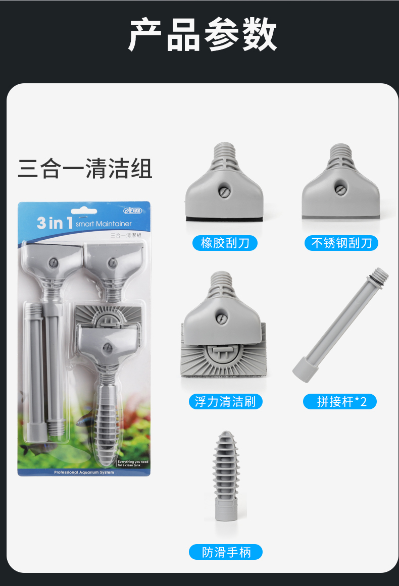 ● 組合式握柄,適用不同尺寸魚缸。