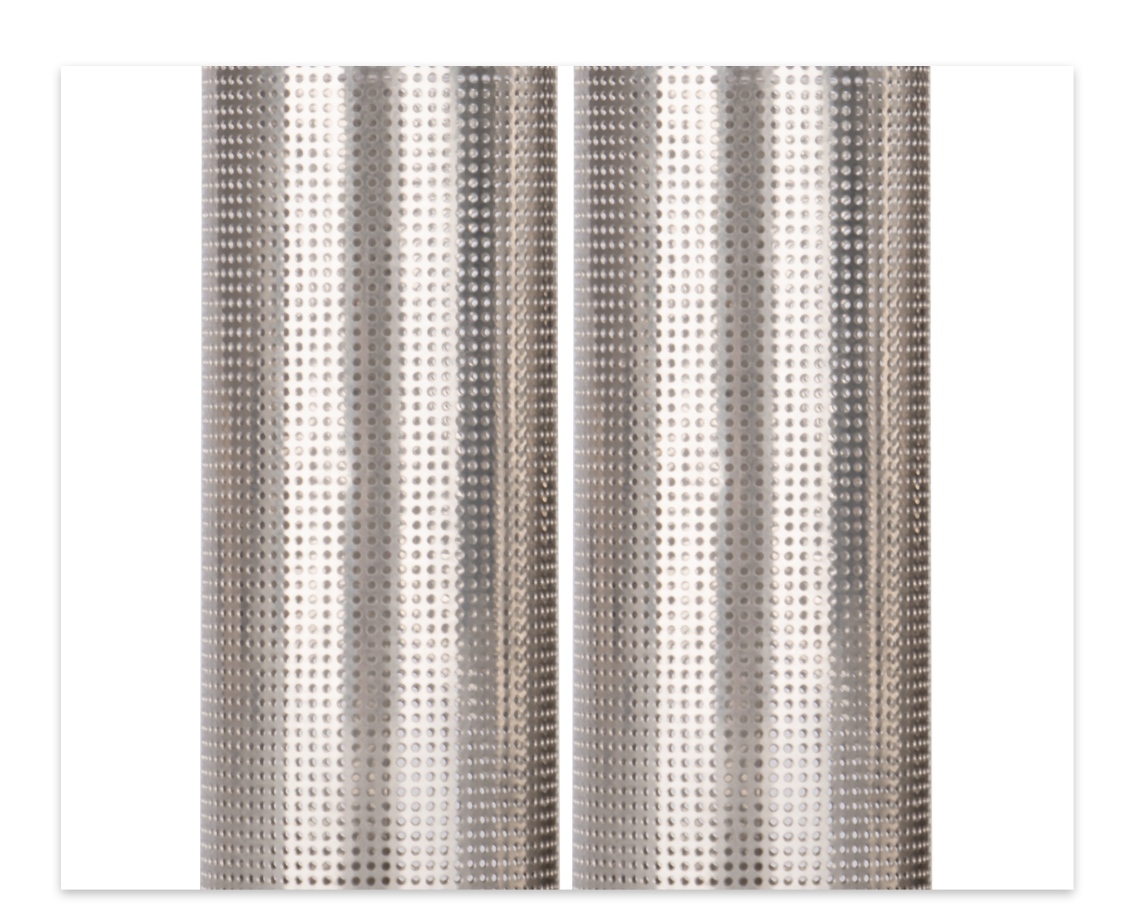 ●CNC精雕工藝孔洞均勻、網面平整,小孔直徑約0.7mm,誤差小於0.01mm。
