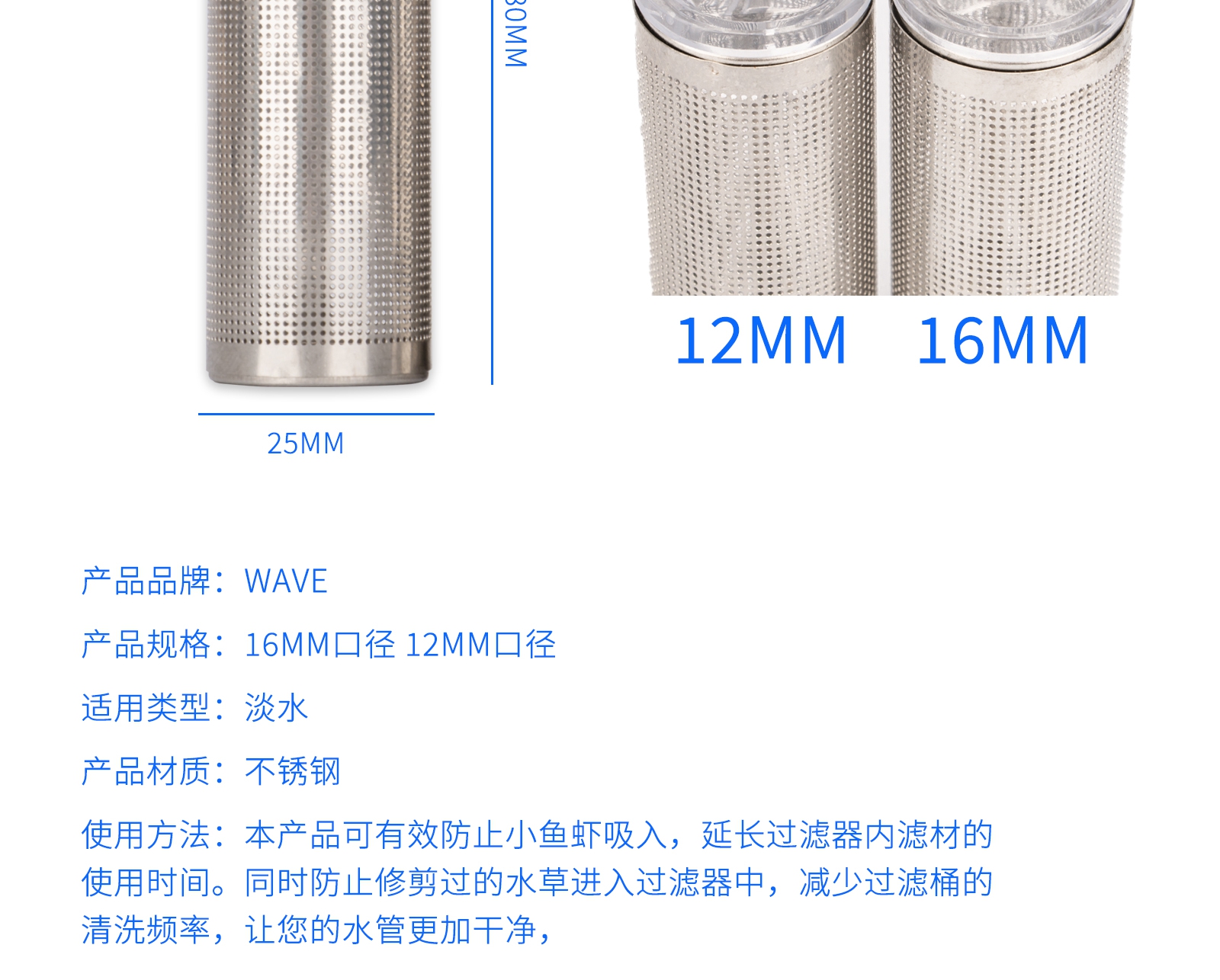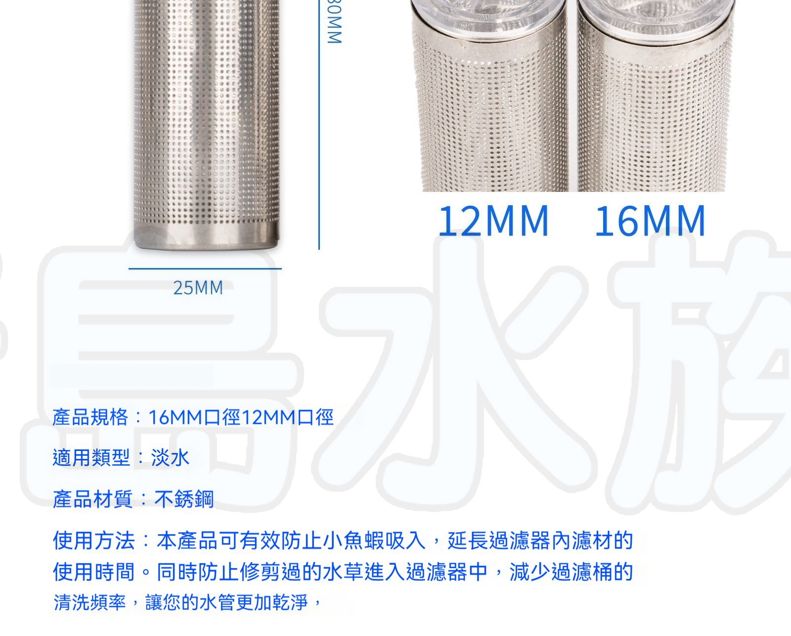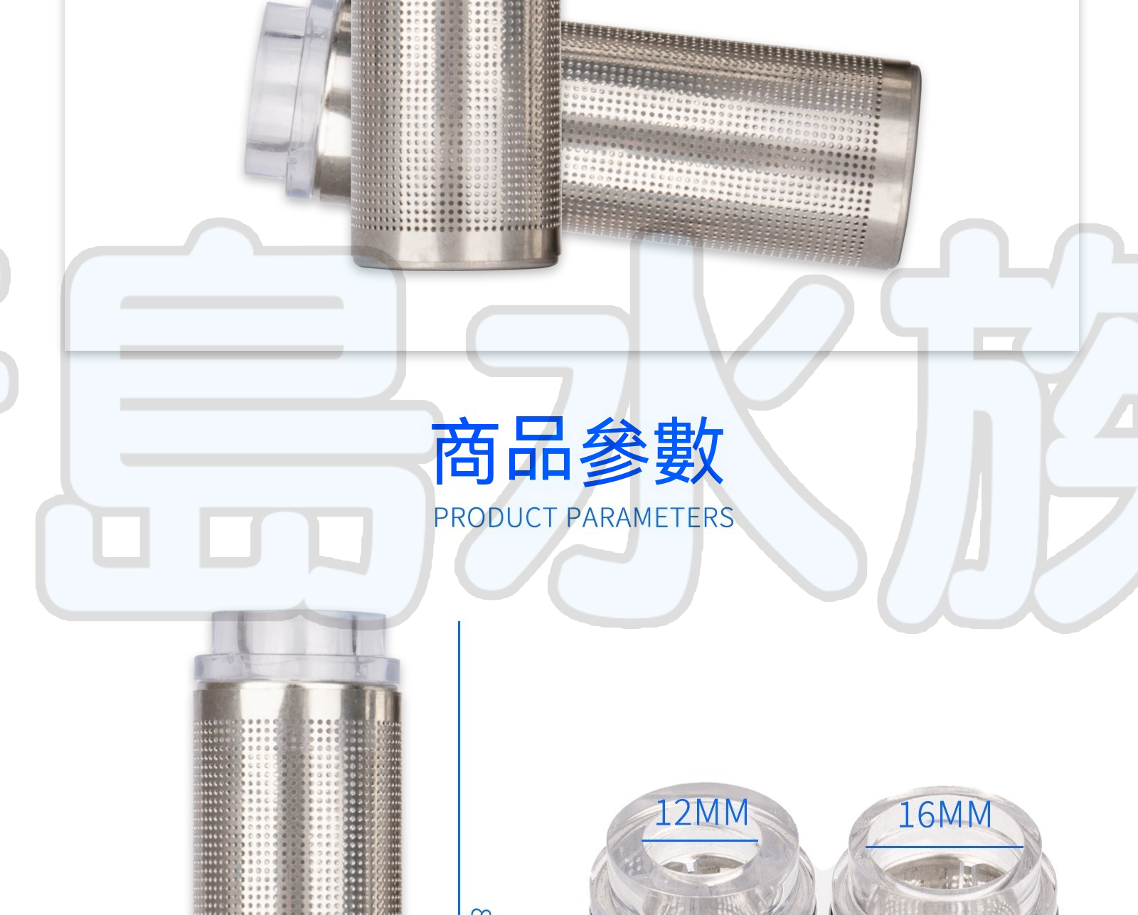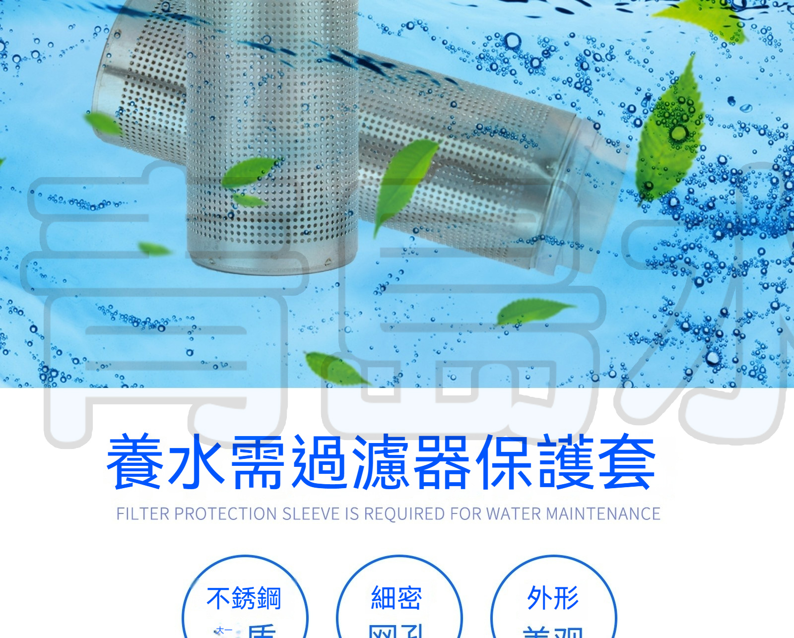–網面細密小於1mm,有效防止小魚小蝦以及異物被吸入,延長濾材壽命。