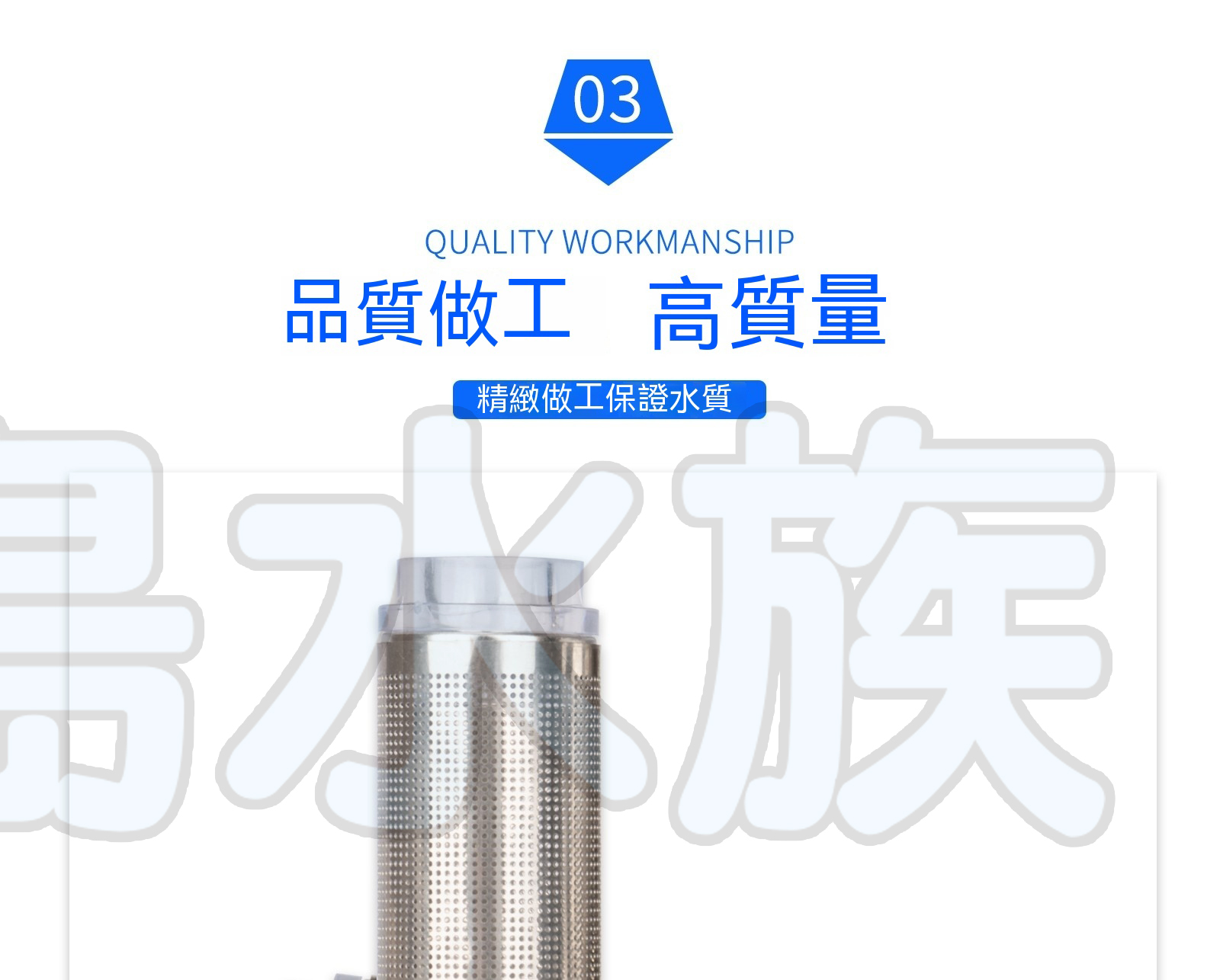 ●有效防止幼小魚蝦以及雜物被吸入 ,延長濾材壽命且不阻礙水流、減少清洗濾桶週期。