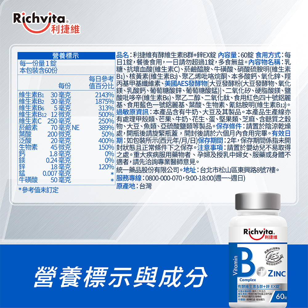 • 利捷維有酵維生素B群+鋅EX錠 60錠2件組