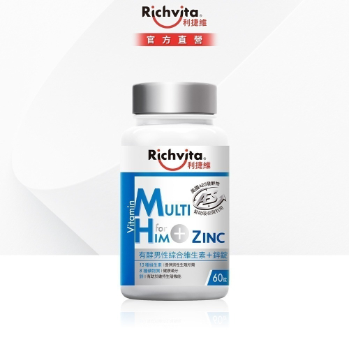 【限量搶購】利捷維有酵男性綜合維生素+鋅 60錠 (效期:2026/12/01)