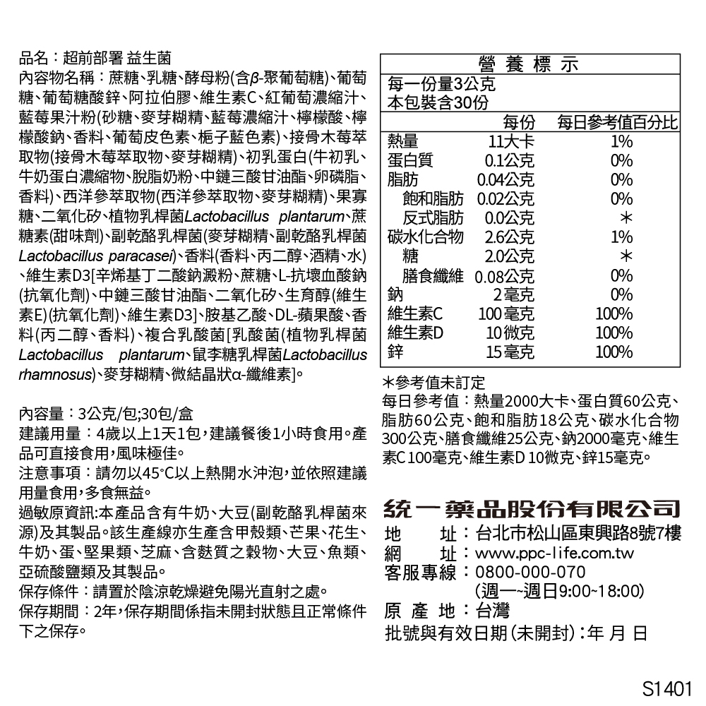 商品名稱超前部署益生菌30入