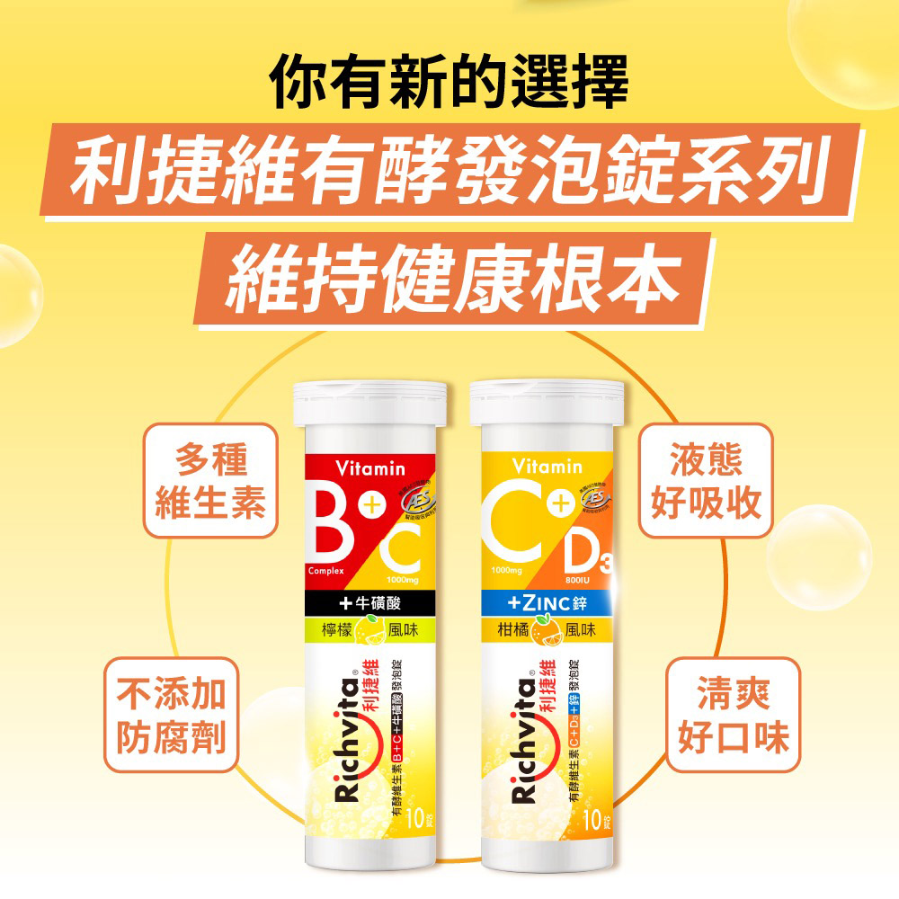 利捷維有酵維生素B群+C+牛磺酸發泡錠10錠