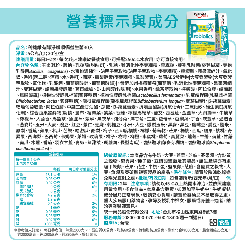 利捷維有酵淨纖順暢益生菌30入