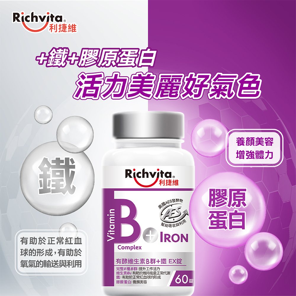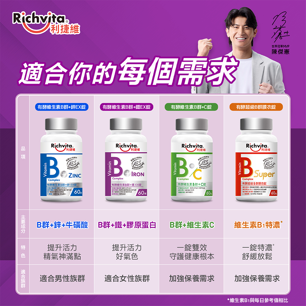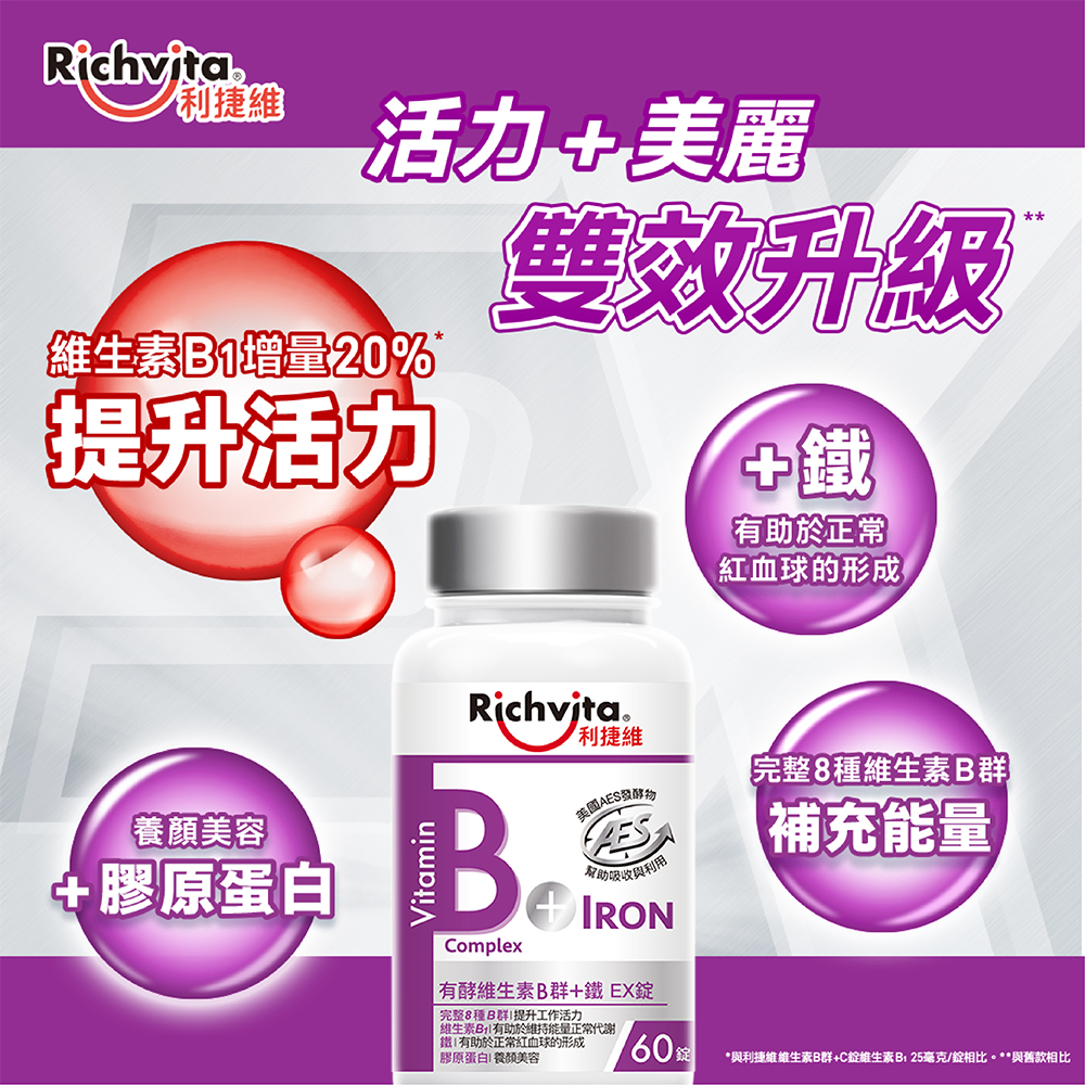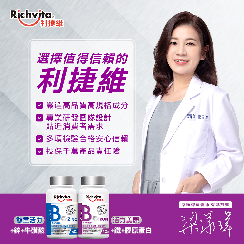 【陳傑憲代言】利捷維 有酵維生素B群+鐵EX錠/有酵維生素B群+鋅EX錠 60錠