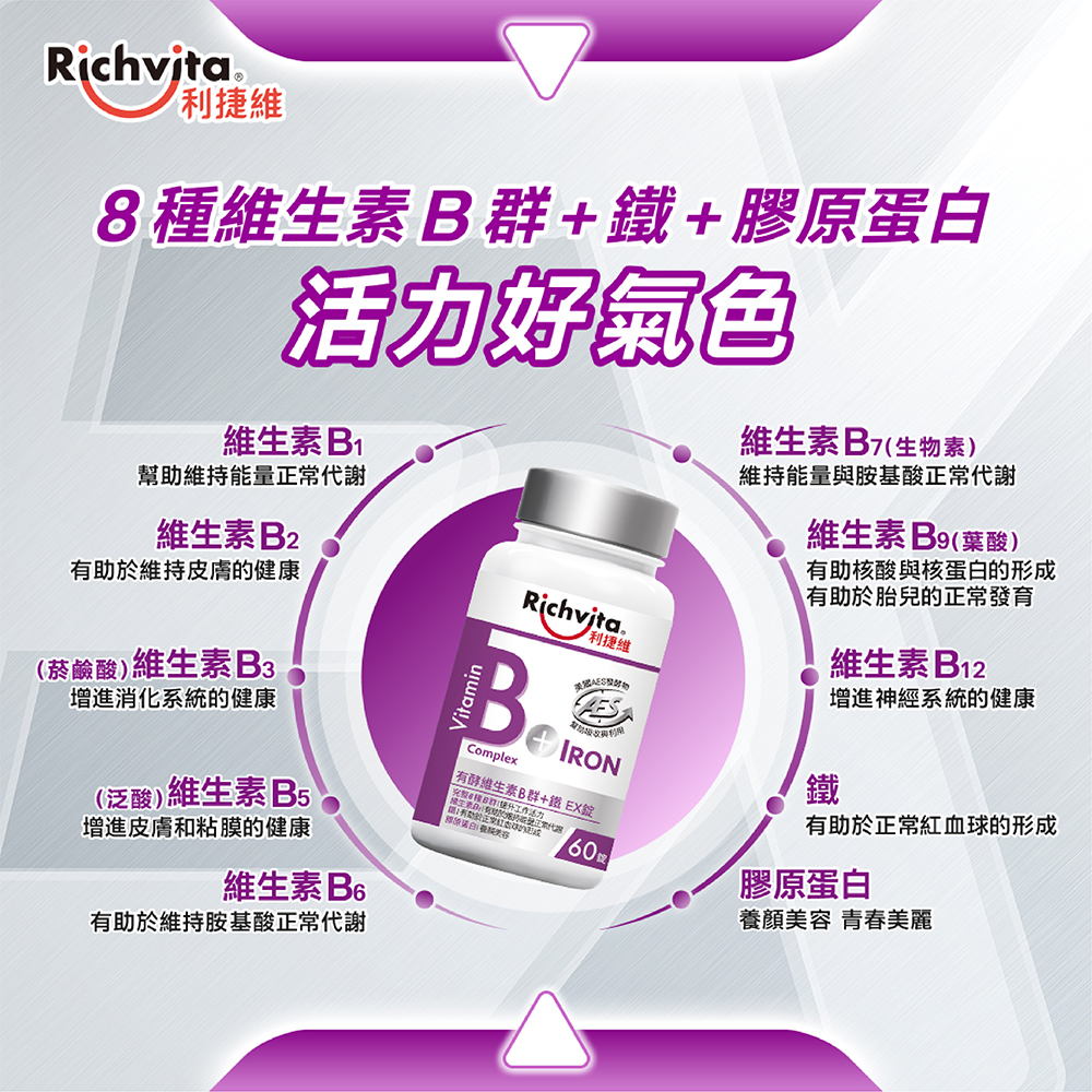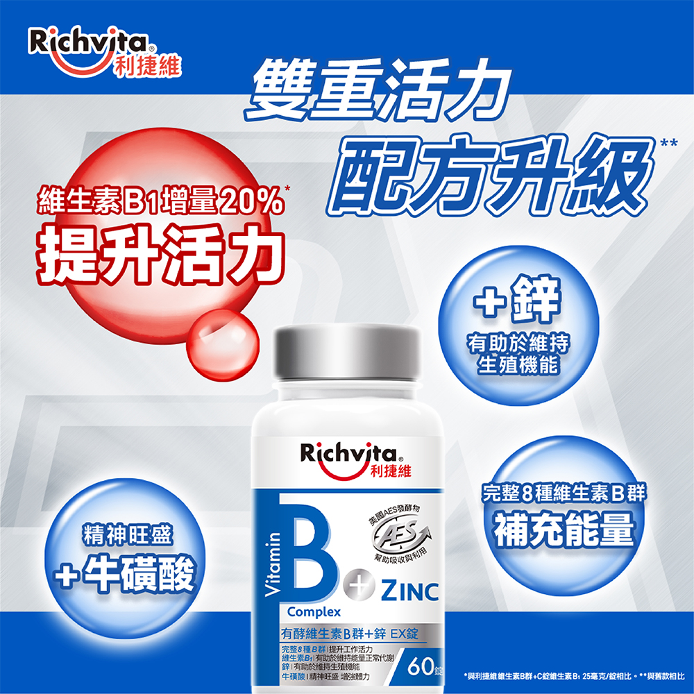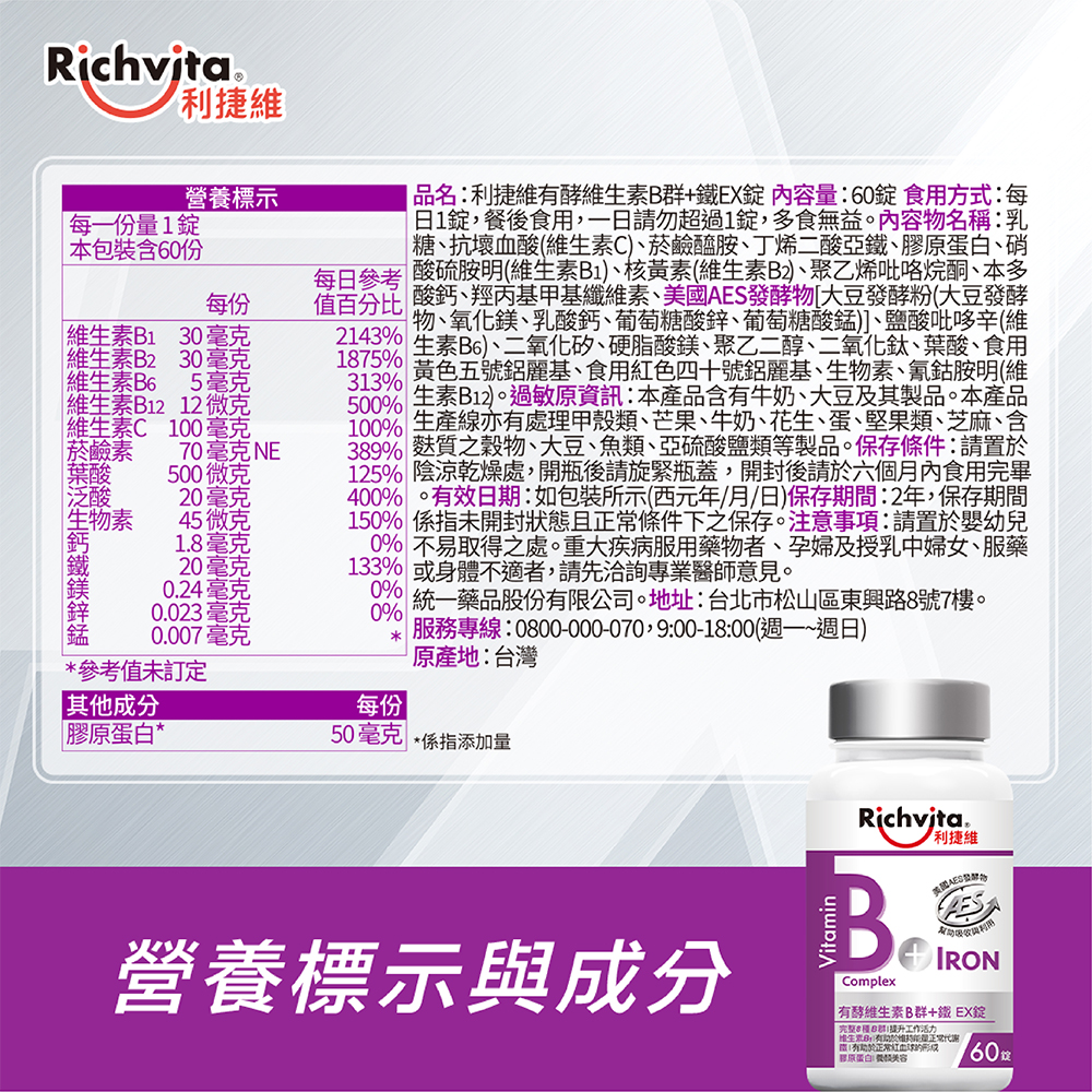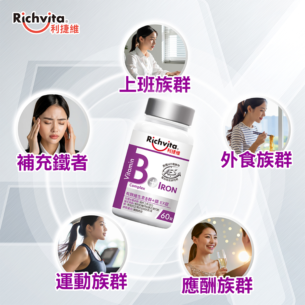 【陳傑憲代言】利捷維 有酵維生素B群+鐵EX錠/有酵維生素B群+鋅EX錠 60錠