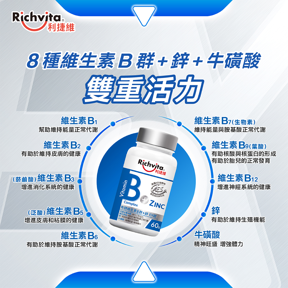 • 利捷維有酵維生素B群+鋅EX錠 60錠