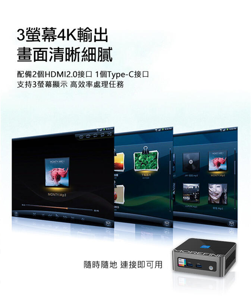 .輸出:三螢幕4K 60Hz 輸出 (HDMI 2.0*2+Type-C)
