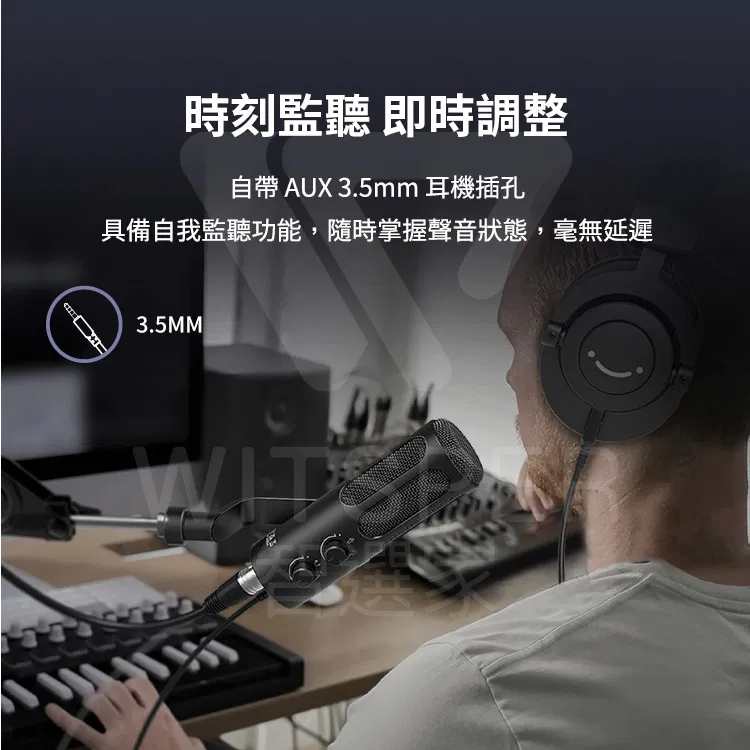 .具備自我監聽功能,自帶 AUX 3.5mm 耳機插孔,隨時掌握聲音狀態,拒絕錄音出狀況