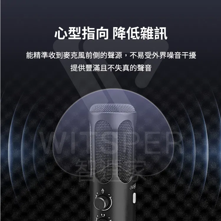 .心型指向收音,精準收錄麥克風前側聲源,不受外界噪音干擾,讓聲音豐滿不失真