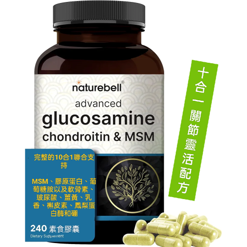 美國自然鐘NatureBell 👍Msm複合葡萄糖胺軟骨素240粒🤘🤘 關節支持複合物 - 含透明質酸、膠原蛋白、薑黃、乳香等 非基改