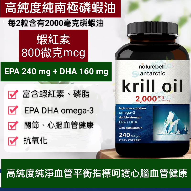 美國自然鐘NatureBell超強南極磷蝦油2000mg 240粒無魚腥味無汞非基轉