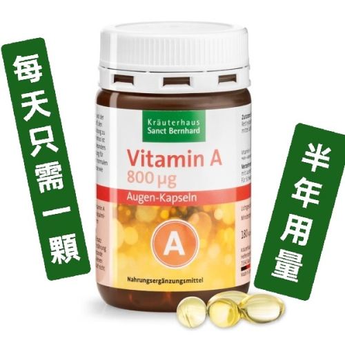 🇩🇪德國百年草本聖伯納德Sanct Bernhard 維生素A護眼膠囊 保健膠囊180粒800µg(毫克)