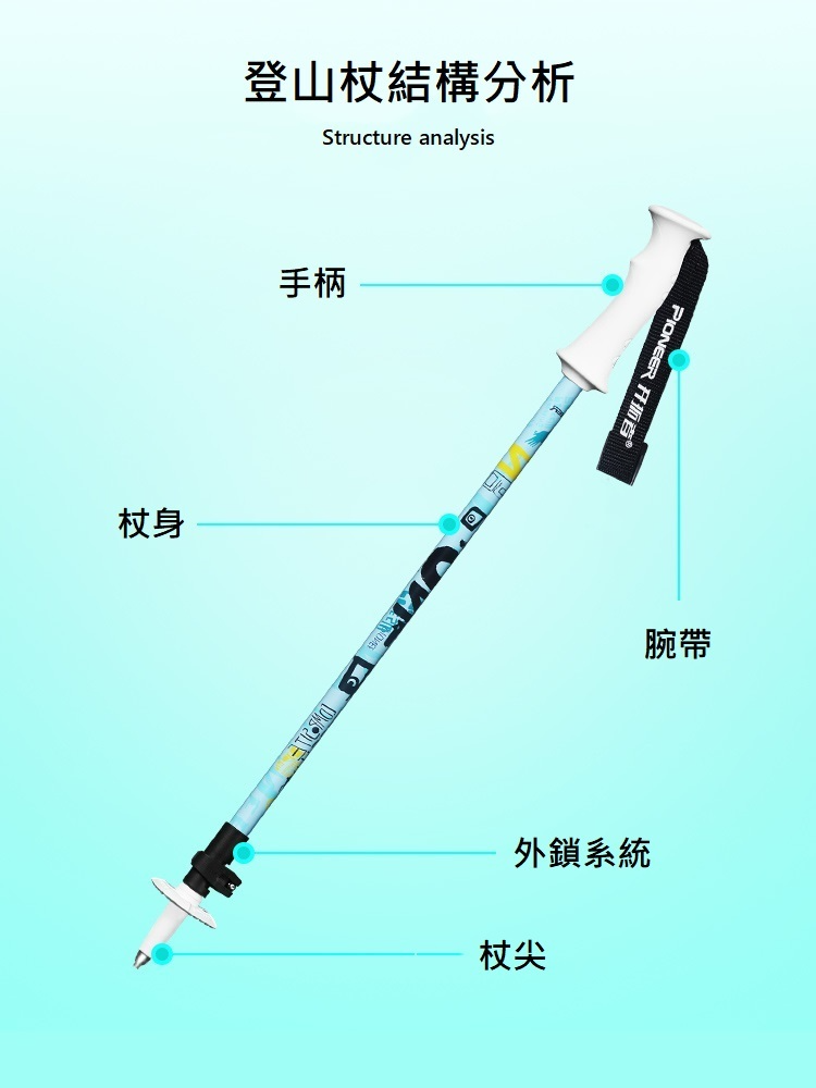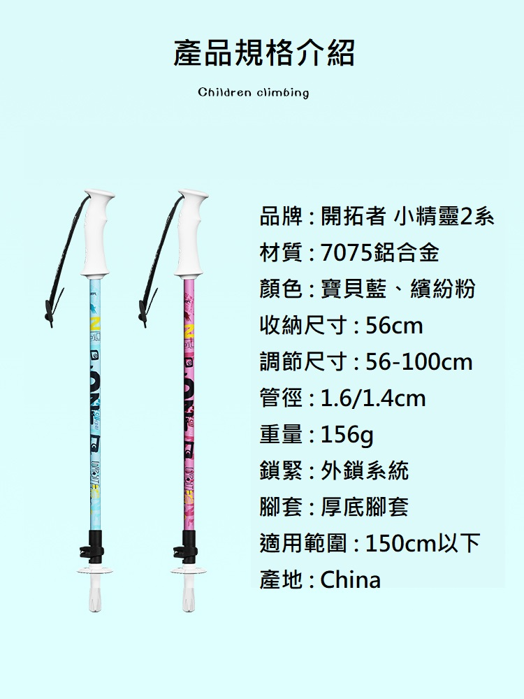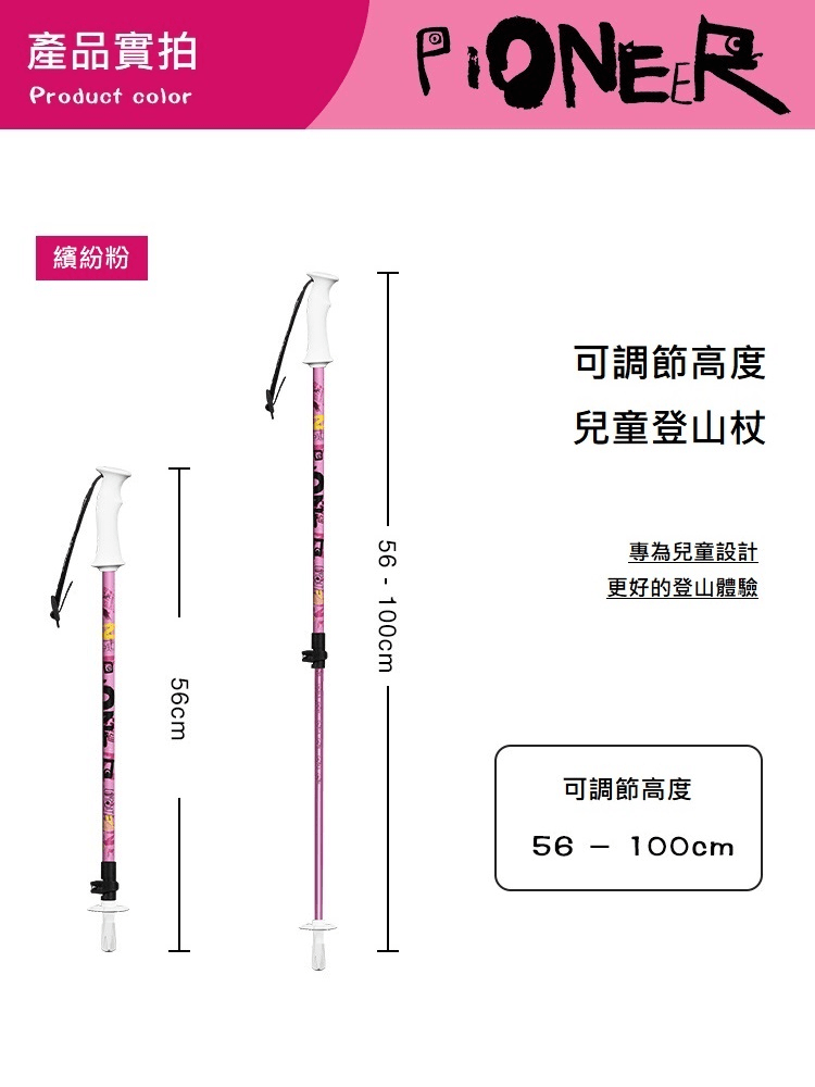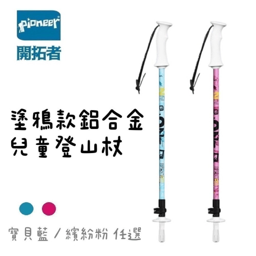 【Pioneer 開拓者】一入 塗鴉款鋁合金兒童登山杖 兩色任選